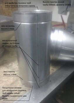 Продольный шов выполнен лежачим фальцем с усилением на конца трубы точечной сваркой.