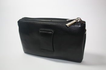 Partea exterioara:: Geanta din piele cu logo metalic. Dispune de curelusa pentru mina si pentru umar.