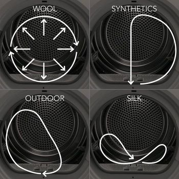 ![]() CICLURI DE USCARE MAI SCURTE, INGRIJIRE MAI BUNADatorita designului imbunatatit al fluxului de aer, uscatoarele AEG usuca mai rapid si mai eficient decat uscatoarele conventionale cu pompa de caldura. Astfel, hainele dvs. sunt ingrijite mai bine, desi ciclurile de uscare sunt mai scurte. |