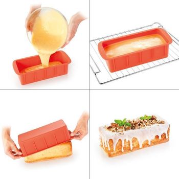 Отлично подходит для приготовления выпечки в форме буханки. Форма не пригорает, печет быстро и равномерно; готовую выпечку легко достать. Изготовлено из первоклассного термостойкого силикона, выдерживает до 230°C. Силиконовые формы легко чистить: после использования их достаточно ополоснуть или вымыть в посудомоечной машине. Удобно хранить. Подходят для газовых, электрических и горячевоздушных духовок.