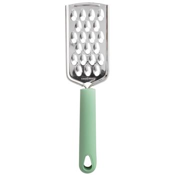 Тёрка мини Casa Masa Grafit изготовлена из высококачественной пищевой нержавеющей стали. Этот материал является очень прочным и долговечным, обладает высокими гигиеничными качествами и легко моется. Удобная рукоятка с отверстием для подвешивания. Тёрку можно мыть в посудомоечной машине.