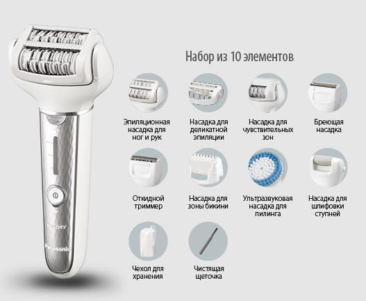 бикини-триммер; бритвенная насадка; насадка для деликатного удаления волос; насадка для пилинга; насадка для шлифовки кожи ступней;