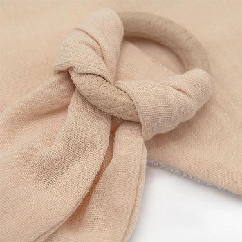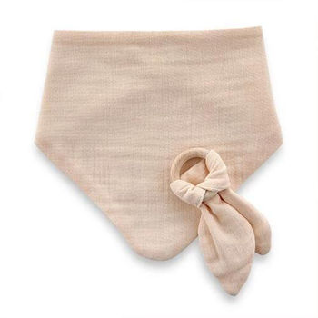 736 Set baveta cu doua fete din muselina cu jucarie dentitie Bej
