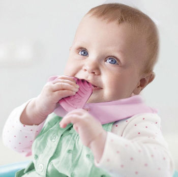 686 Baveta tip bandana cu jucarie dentitie Roz