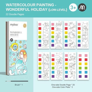 Набор для творчества Mideer MD4226 Cartea de colorat cu acuarele inclusă Vacanță minunată