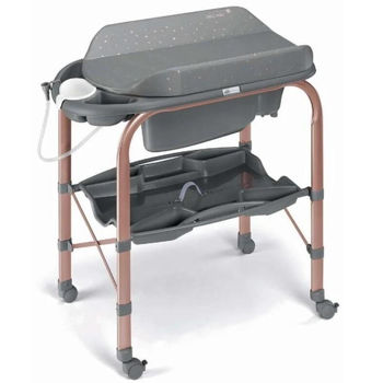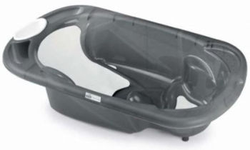 детскую ванночку Bagno с 2 анатомически сформированными нескользящими сиденьями (наклоненное сиденье для малышей 0-6 мес, и второе с подлокотниками - для малышей постарше от 6 до 12), которая выдвигается, чтобы мама могла легко купать ребенка и переодевать его