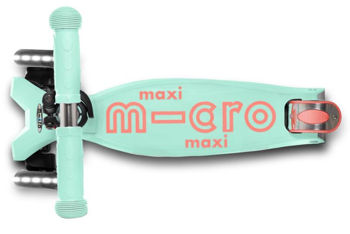 Maxi Micro Deluxe весит всего 2,5 кг, что упрощает обращение, транспортировку и хранение. Руль окрашен в цвет металлик, что защищает его от коррозии и придает самокату шикарный вид. Ручка телескопическая, регулируется по росту ребенка и снимается. Платформа изготовлена из пластика, армированного стекловолокном, и на ней напечатан логотип Micro, однако этот логотип имеет практичный вид, поскольку изготовлен из силикона и обеспечивает повышенное сцепление подошвы обуви с платформой. Также сзади на платформе имеются 2 светоотражающие полосы.