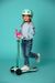 В колеса самоката встроены светодиоды, которые загораются, когда ребенок идет. Батарейки не нужны, светодиоды включаются и питаются при повороте колес.