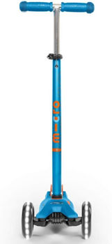 Maxi Micro Deluxe весит всего 2,5 кг, что упрощает обращение, транспортировку и хранение. Руль окрашен в цвет металлик, что защищает его от коррозии и придает самокату шикарный вид. Ручка телескопическая, регулируется по росту ребенка и снимается. Платформа изготовлена из пластика, армированного стекловолокном, и на ней напечатан логотип Micro, однако этот логотип имеет практичный вид, поскольку изготовлен из силикона и обеспечивает повышенное сцепление подошвы обуви с платформой. Также сзади на платформе имеются 2 светоотражающие полосы.