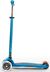 В колеса самоката встроены светодиоды, которые загораются, когда ребенок идет. Батарейки не нужны, светодиоды включаются и питаются при повороте колес.