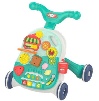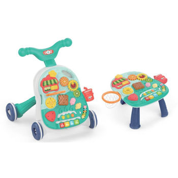 2 в 1: игровой стол Walker и Activity. Подходит для детей старше 12 м. Интерактивная панель с музыкой и светом. Интересные красочные формы и фортепиано. Корзина с тремя разноцветными мячами. Регулировка высоты ручки от 40 до 42 см. Возможность блокировки задних колес. Нескользящие колеса. Предотвращает О-образную деформацию ножек. Для работы необходимы 3 батарейки АА (в комплект не входят).