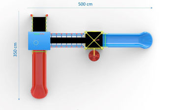 Комплектация: две Башни с крышей, Лестница с поручнями, две Горки прямые (H=1m), лестница для подъема "Ёлочка", Мост из армированного каната-соединяющий две башни.
