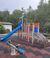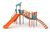 Материал: окрашенные порошковой краской металлические трубы, панели из полиэтилена высокой плотности HDPE. Горка изготовлена из литого пластика LLDPE высокой прочности (по технологии ротационного формования). Элементы для лазанья из металла. Пластиковые заглушки на все болтовые соединения. При установке изделие бетонируется.