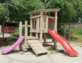 Детский игровой домик CASCADE-1 с двумя горками предназначен для для частного использования. Комплекс имеет деревянную конструкцию. Детской площадкой CASCADE-1 одновременно могут пользоваться 1-6 детей.