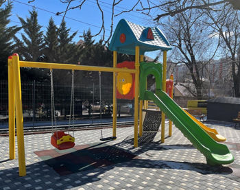 2 комплекта подвесных качелей, оцинкованный крепеж, пластиковые заглушки на все болтовые соединения, прочные узлы соединения, при установке изделие бетонируется