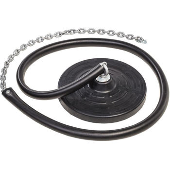 Литое сиденье имеет внутри алюминиевую вкладку 3мм. Поставляется в комплекте с цепью из нержавеющей стали и с защитным рукавом. Цепь сверху завершается D-образным шекелем.