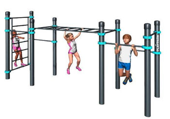 Детский спортивный комплекс "Workout КIDS" С-122 устанавливают на общественных территориях: во дворах, парках, детских садах, школах, базах отдыха. Подходит для тренировок детей от 3 до 12 лет.