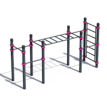 Комплектация: пять Турников разноуровневых, Рукоход - горизонтальный, Шведская лестница.