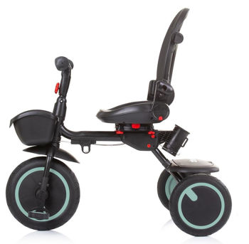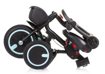 Колесный колпак на переднем колесе, предотвращающий защемление ног ребенка. Обе спинки складываются для компактного хранения. Быстрая и простая установка и снятие ручки, переднего колеса и руля с помощью щелчка. Складная задняя часть трицикла – для удобства хранения. Трехколесный велосипед произведен в соответствии с Директивой по безопасности игрушек 2009/48/EC.