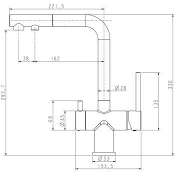 двухрычажный; поворот излива - 360°