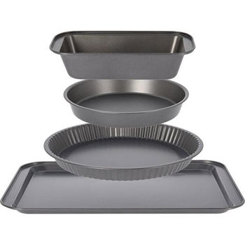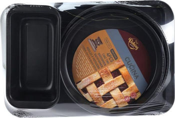 1 металлический противень: 41x28х2 см; 1 прямоугольная форма для выпечки: 25х13х6 см; 1 круглая форма для выпечки: диаметр 29x3 см; 1 круглая форма для выпечки: диаметр 26х3 см
