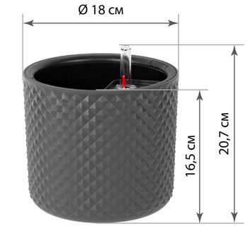 горшок для цветка, вставка для сбора воды, элемент контроля полива