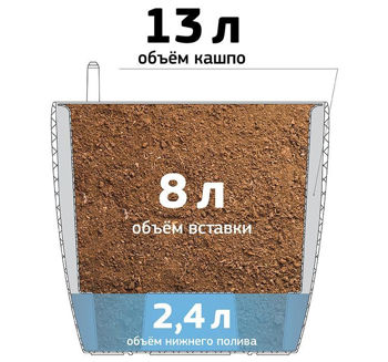 горшок для цветка, вставка для сбора воды, элемент контроля полива