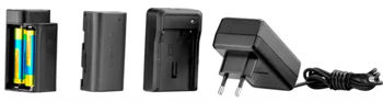В комплект поставки входят: пластиковый корпус, настенный кронштейн (FRS800), блок щелочных аккумуляторов, зарядное устройство, литий-ионный аккумулятор.