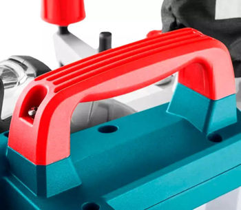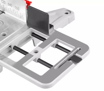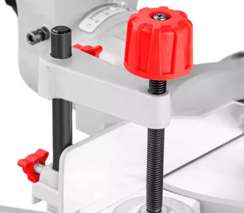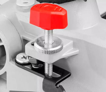 Усовершенствованная система фиксации стола с 9 точками упора обеспечивает быструю и точную регулировку под типичными углами. В комплект поставки входит зажим для материала, который надёжно фиксирует заготовку сверху.