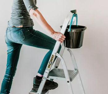 Крюк на лестнице служит не только для подвешивания инструментов и ведра (не входит в комплект), но и добавляет удобства. Все необходимые инструменты всегда будут в пределах досягаемости, избавляя от необходимости постоянно спускаться и подниматься по лестнице. Прочная конструкция крюка обеспечивает безопасное и надежное подвешивание, повышая комфорт и эффективность работы.