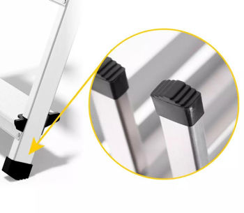Лестница оснащена специальными противоскользящими ножками, которые отвечают самым высоким стандартам безопасности. Эти ножки обеспечивают устойчивость лестницы на различных поверхностях, сводя к минимуму риск смещения во время использования.