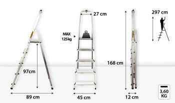 Эта 8-ступенчатая лестница в сложенном виде имеет толщину всего 12 см, что делает ее компактной и плоской, а также очень удобной для транспортировки. Ее вес составляет всего 5,6 кг, что значительно облегчает ее транспортировку и хранение.