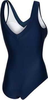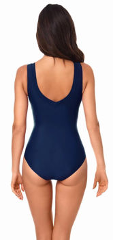 Этот очаровательный купальный костюм с окантовкой и привлекательным V-образным вырезом представлен в различных размерах (от 38 до 54).