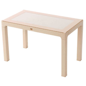 Masă Rattan cu sticlă, 140x80x75, Bej