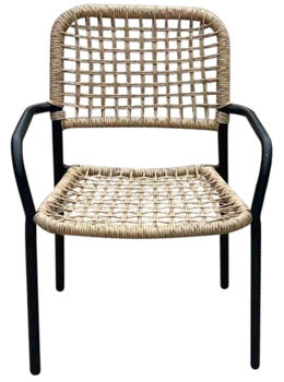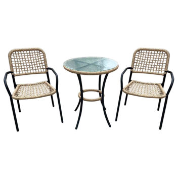 Set Polirattan, masa si 2 scaune, metal cu blat de sticla, Bej