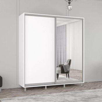 Aron cu uși glisante din oglindă și PAL (190x60x210H cm) Alb Brilliant