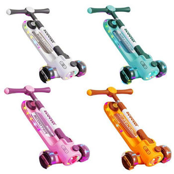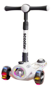 Детский трехколесный самокат с музыкой, подсветкой и яркими колесами предназначен для малышей.