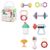 Многообразие звуков и увлекательная игра: Каждая погремушка издает разные звуки, такие как тряска, вращение и нажатие, чтобы стимулировать развитие слуха и развлекать малышей. Яркие цвета и увлекательные звуки способствуют развитию зрительного восприятия и слуховых навыков, а также развивают мелкую моторику.