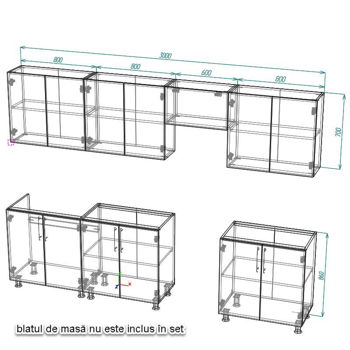 Мебель для кухни Smartex (30164) K4 300сm Alb+Grafit