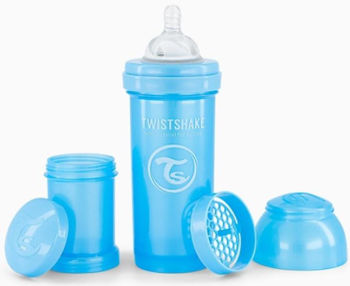 Бутылочка Twistshake станет отличным дополнением к грудному вскармливанию. Каждая бутылочка включает практичный контейнер для молочной смеси и сетку для её перемешивания. Уникальная система TwistFlow активно предотвращает появление колик и обеспечивает равномерный поток пищи. Бутылочка имеет широкий горлышко, что облегчает её чистку. Также она обладает удобным дизайном, который легко держать в руке и сохраняет тепло.