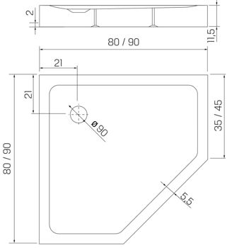 Душевой поддон New Trendy Поднос Mild, пятиугольный, 90x90x11,5, B-0603