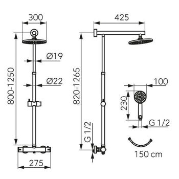 pălărie duș; furtun duș; bară;