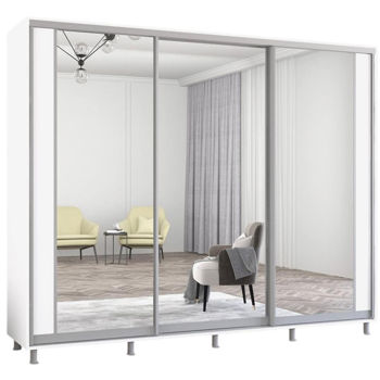 Aron uși glisante din PAL cu oglindă vertical (270x60x200H cm) Alb Brilliant