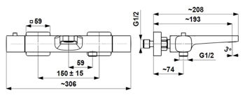 Baterie pentru cadă kfa armatura Malaga на стену, термостатический PVD оружейная сталь (124019)