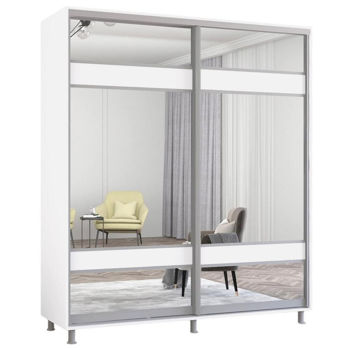 Aron-P uși glisante din PAL cu oglindă zebra (190x60x220H cm) Alb Brilliant