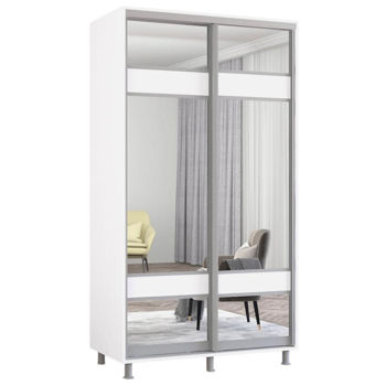Aron-S 1.0m-1.8m uși glisante din PAL cu oglindă zebra (120x60x200H cm) Alb Brilliant