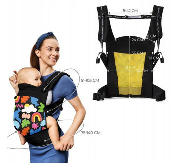 - Переноска обеспечивает правильное положение тела ребенка, равномерно распределяя вес.