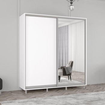 Aron-P uși glisante din oglindă și PAL (190x60x230H cm) Alb Brilliant