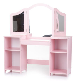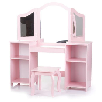 Oferă fiecărei fete un colț de frumusețe de vis, unde cele mai importante și interesante jocuri sunt coafarea, machiajul și frumusețea! Masă de toaletă cu oglindă și otoman - un set practic și frumos pentru toate micile prințese și frumuseți, în roz pal, cu un compartiment spațios pentru depozitarea tuturor accesoriilor pentru fete: panglici, agrafe de păr, cosmetice, bijuterii etc.