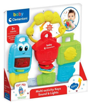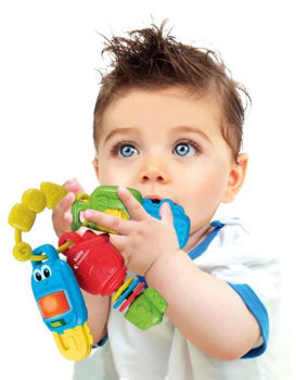 Веселая музыкальная погремушка 3 в 1. Эта связка ключей у которой каждый ключ имеет собственное действие, стимулирующее слуховое и тактильное восприятие, можно взять с собой куда угодно благодаря практичной ручке. Интерактивная электроника содержит 16 песен и мелодий.